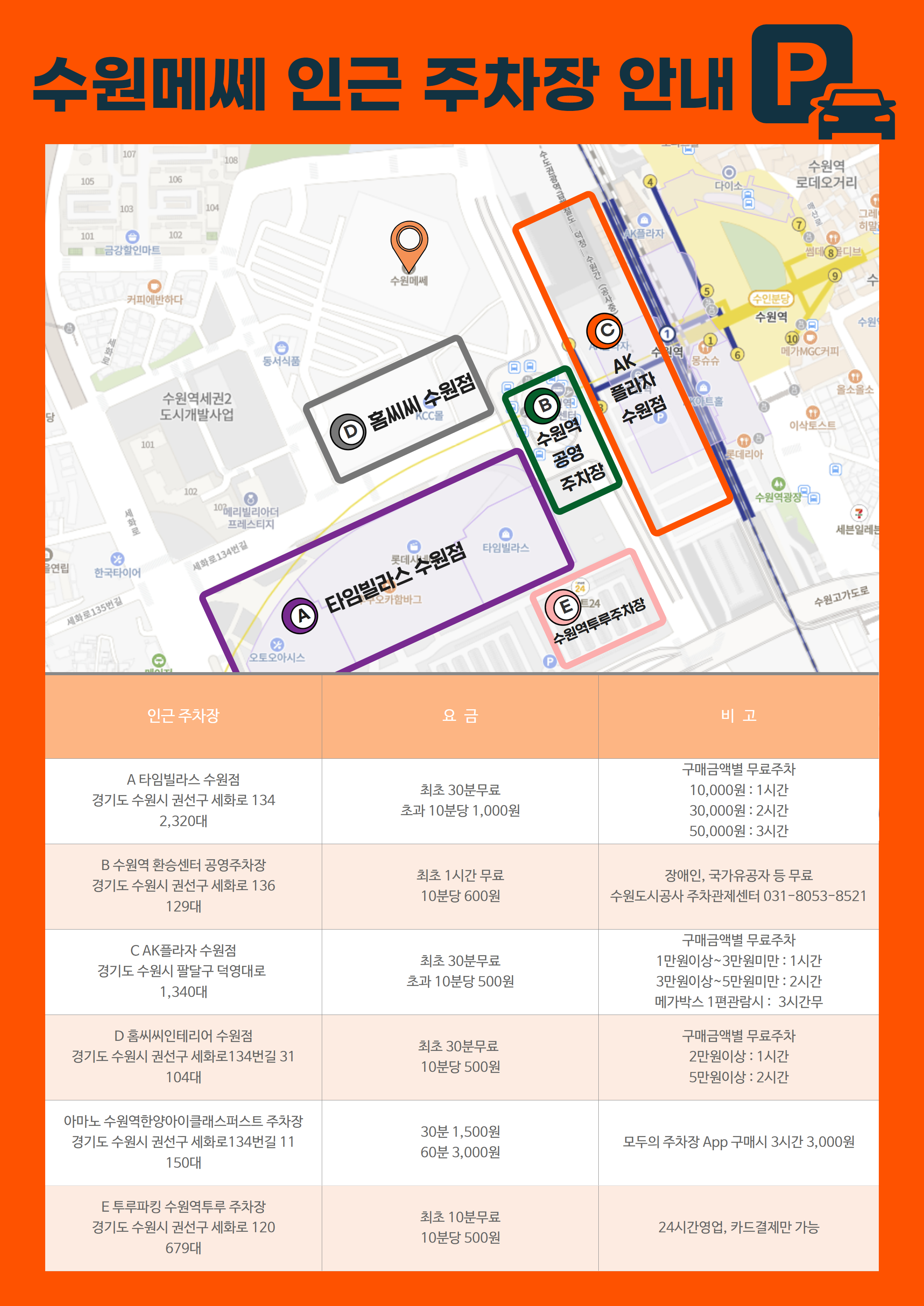 행사장(수원 메쎄) 주변 주차장 안내드리니 관람에 참고해주시길 바랍니다.