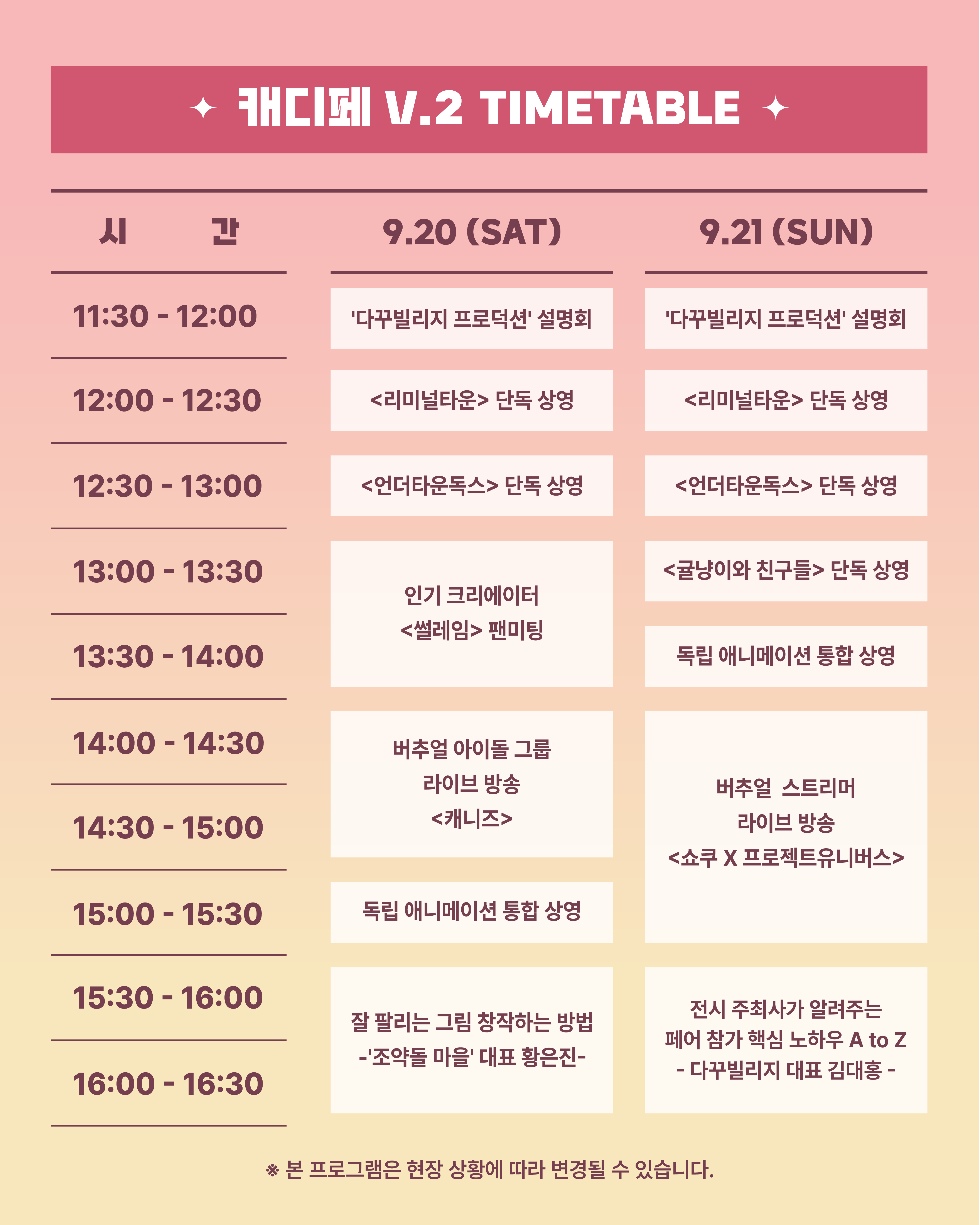 <캐릭터디자인페어V.2> 무대 행사 타임테이블 안내드립니다.